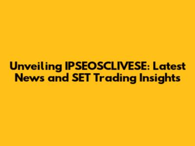 Unveiling IPSEOSCLIVESE: Latest News And SET Trading Insights