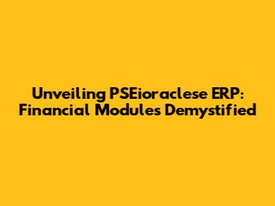 Unveiling PSEioraclese ERP: Financial Modules Demystified