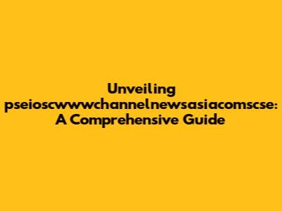 Unveiling Pseioscwwwchannelnewsasiacomscse: A Comprehensive Guide