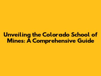 Unveiling The Colorado School Of Mines: A Comprehensive Guide