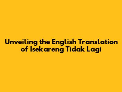 Unveiling The English Translation Of 'Isekareng Tidak Lagi'