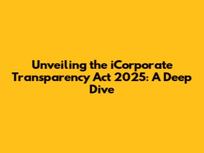 Hey everyone! Let's talk about something super important – the iCorporate Transparency Act of 2025. Sounds kinda official, right? But trust me, it's something we all need to understand, especially if you're into business or just keeping up with how the world works. This act is a big deal, and we're going to break it down so you get the gist of what's happening. Think of it as a way to make sure everyone plays fair in the business world, kinda like a referee making sure the game's clean. Get ready for a deep dive to know more about the iCorporate Transparency Act of 2025 and its impact on everyone involved.