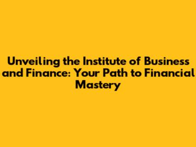 Unveiling The Institute Of Business And Finance: Your Path To Financial Mastery