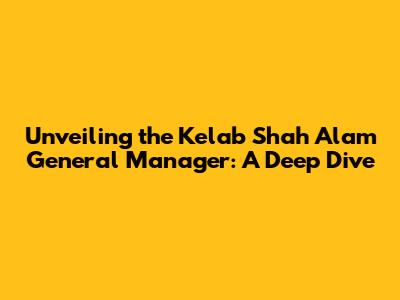 Unveiling The Kelab Shah Alam General Manager: A Deep Dive