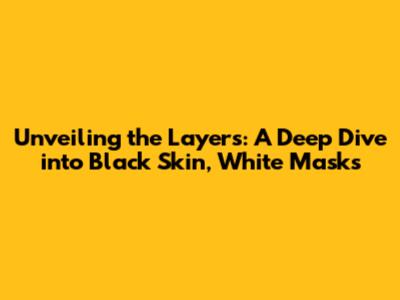 Unveiling The Layers: A Deep Dive Into Black Skin, White Masks