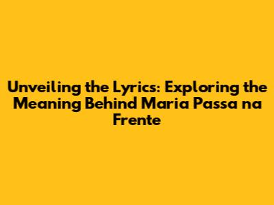 Unveiling The Lyrics: Exploring The Meaning Behind 'Maria Passa Na Frente'