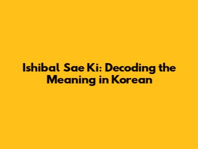 Unveiling The Meaning Of Ishibal Sae Ki In Korean