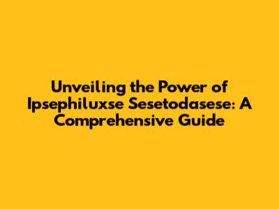 Unveiling The Power Of Ipsephiluxse Sesetodasese: A Comprehensive Guide