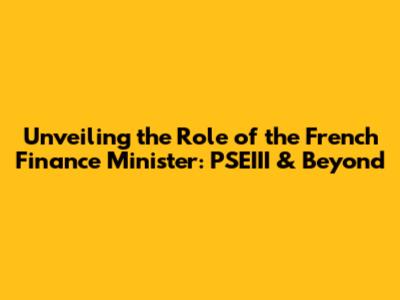 Unveiling The Role Of The French Finance Minister: PSEIII & Beyond