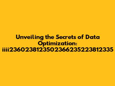Unveiling The Secrets Of Data Optimization: Iiii2360238123502366235223812335