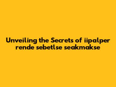 Unveiling The Secrets Of Iipalper Rende Sebetlse Seakmakse
