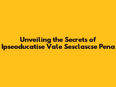 Unveiling The Secrets Of Ipseoducatise Vale Sesclascse Pena