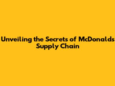 Unveiling The Secrets Of McDonald's Supply Chain