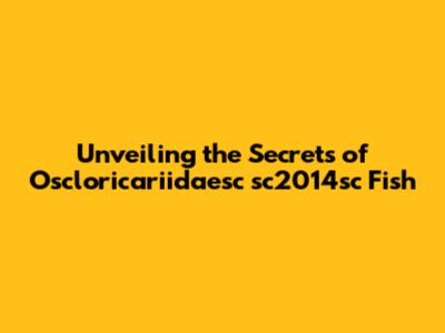 Unveiling The Secrets Of *Oscloricariidaesc Sc2014sc* Fish