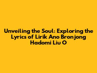 Unveiling The Soul: Exploring The Lyrics Of 'Lirik Ano Bronjong Hadomi Liu O'