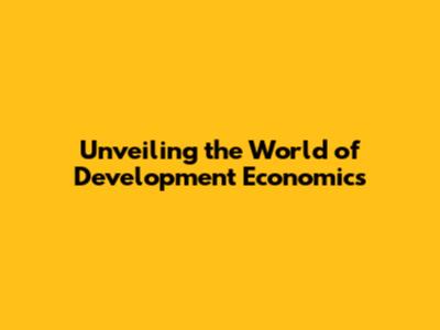 Unveiling The World Of Development Economics