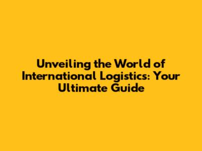 Unveiling The World Of International Logistics: Your Ultimate Guide