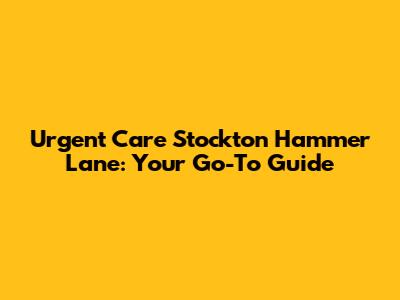 Urgent Care Stockton Hammer Lane: Your Guide