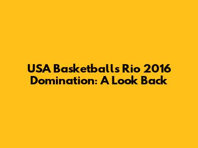 USA Basketball's Rio 2016 Domination: A Look Back
