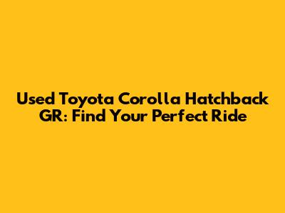 Used Toyota Corolla Hatchback GR: Find Your Perfect Ride