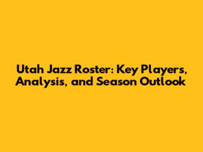 Utah Jazz Roster: Key Players, Analysis, And Season Outlook
