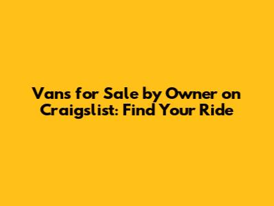Vans For Sale By Owner On Craigslist: Find Your Ride