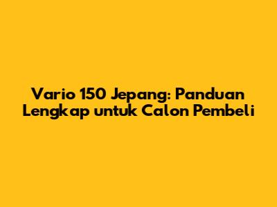 Semoga panduan ini bermanfaat bagi Anda yang sedang mencari informasi tentang Vario 150 di Jepang! Selamat mencari dan semoga sukses menemukan motor impian Anda.