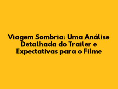 Viagem Sombria parece ser um filme que vai mexer com as nossas emoções. O trailer é instigante, os personagens são intrigantes e a história promete ser cheia de suspense. Se você é fã do gênero, não pode perder Viagem Sombria. O filme tem tudo para ser um sucesso de crítica e de público. Prepare-se para se assustar, se emocionar e se surpreender. Viagem Sombria promete ser uma experiência inesquecível. Então, guys, fiquem ligados nas novidades sobre o filme, e preparem-se para embarcar nessa Viagem Sombria!