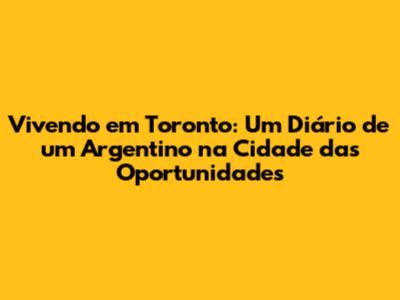 Vivendo Em Toronto: Um Diário De Um Argentino Na Cidade Das Oportunidades