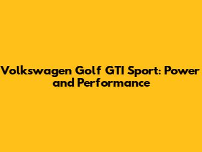 Volkswagen Golf GTI Sport: Power And Performance
