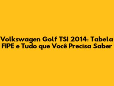 Volkswagen Golf TSI 2014: Entendendo a Tabela FIPE e Seu Impacto