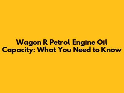 Wagon R Petrol Engine Oil Capacity: What You Need To Know