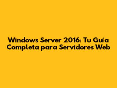 Windows Server 2016: Tu Guía Completa Para Servidores Web