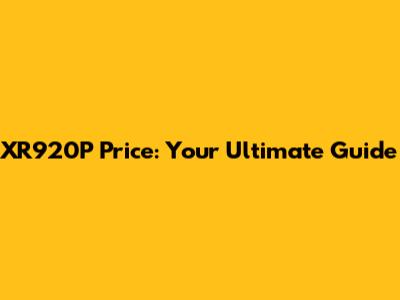 XR920P Price: Your Ultimate Guide
