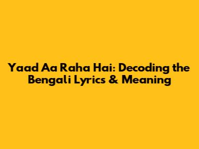 Yaad Aa Raha Hai: Bengali Lyrics & Meaning Explored