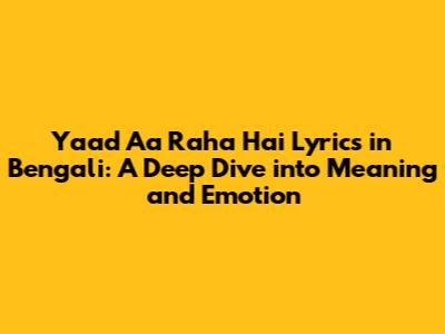 Yaad Aa Raha Hai Lyrics In Bengali: A Deep Dive