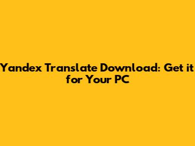 Yandex Translate Download: Get It For Your PC