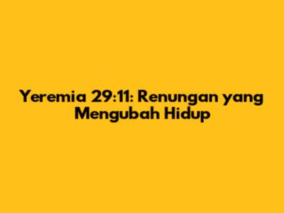 Yeremia 29:11: Renungan Mendalam Untuk Hidupmu