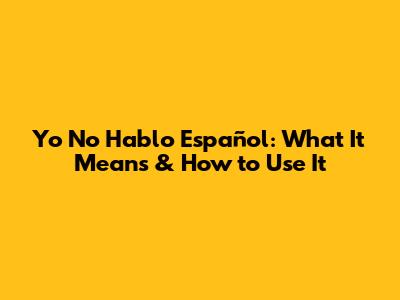 Yo No Hablo Español: What It Means & How To Use It