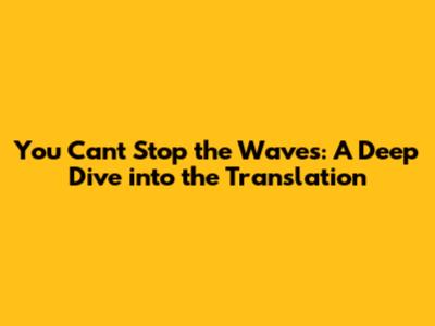 You Can't Stop The Waves: A Deep Dive Into The Translation