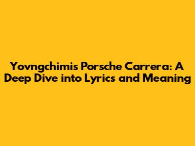 Yovngchimi's Porsche Carrera: Lyrics, Meaning, & Analysis