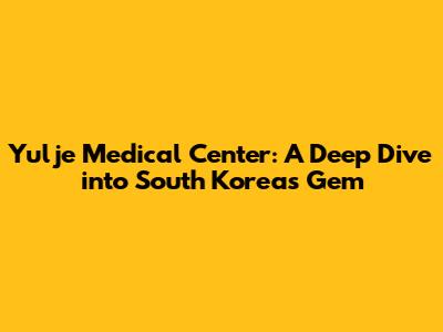 Yulje Medical Center: A Deep Dive Into South Korea's Gem