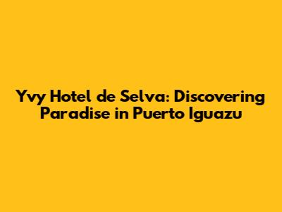Hey guys! Ready to dive into an unforgettable adventure? We're talking about the Yvy Hotel de Selva in Puerto Iguazu, a spot that's more than just a place to crash – it's your launchpad to explore the breathtaking Iguazu Falls and the lush rainforest that surrounds them. This hotel is all about blending comfort with the raw beauty of nature. Whether you're a seasoned traveler or a first-timer, get ready to be amazed by this incredible experience. This guide will walk you through everything you need to know, from the hotel's amenities to tips on making the most of your trip. Let's get started!