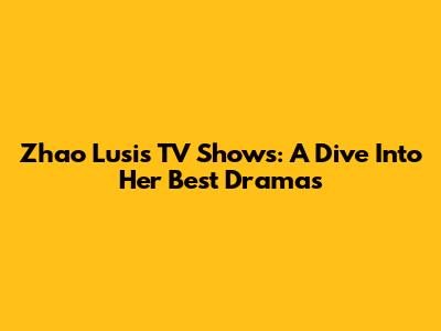 Zhao Lusi's TV Shows: A Dive Into Her Best Dramas